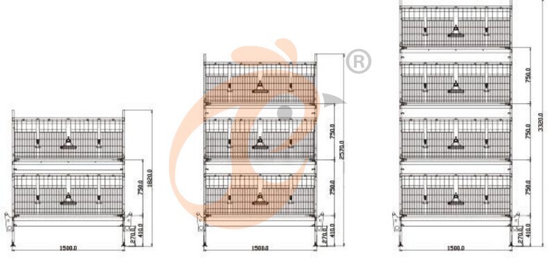Here is drawing of 2 tiers, 3 tiers and 4 tiers of broiler chicken cage.